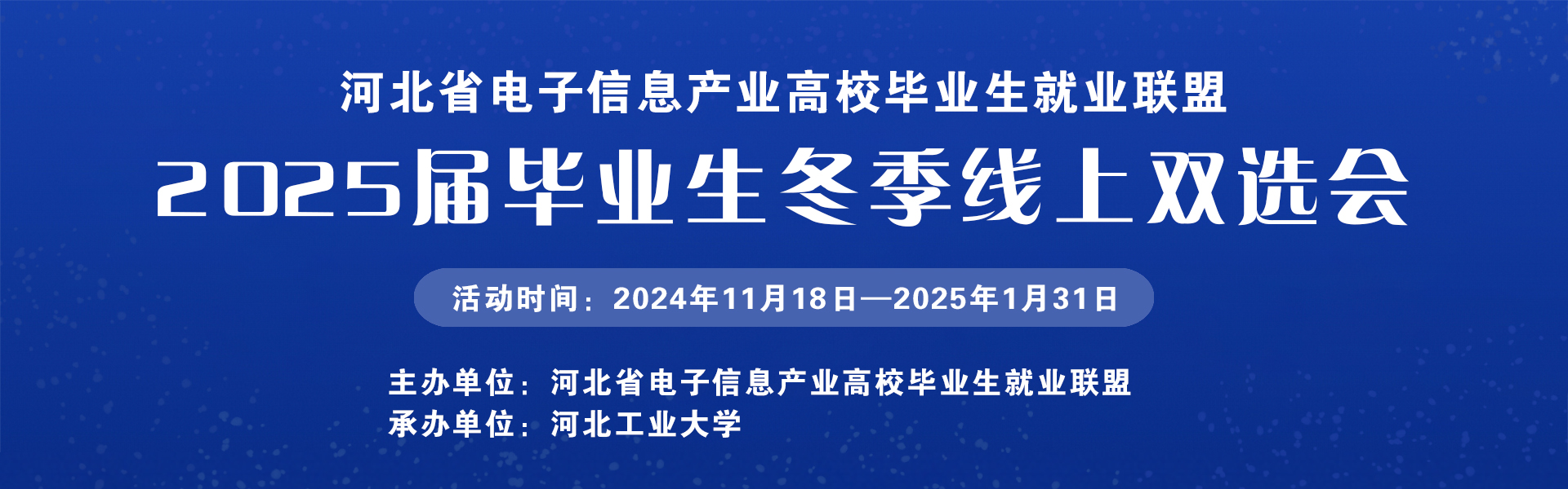 为贯彻落实河北省电子信息产业高校毕业生就业联盟“促进就业对接”、“提升就业质量”“强化校企合作”等就业服务内容,兹定于2024年11月18日—2025年1月31日举办“河北省电子信息产业高校毕业生就业联盟2025届毕业生冬季线上双选会”。