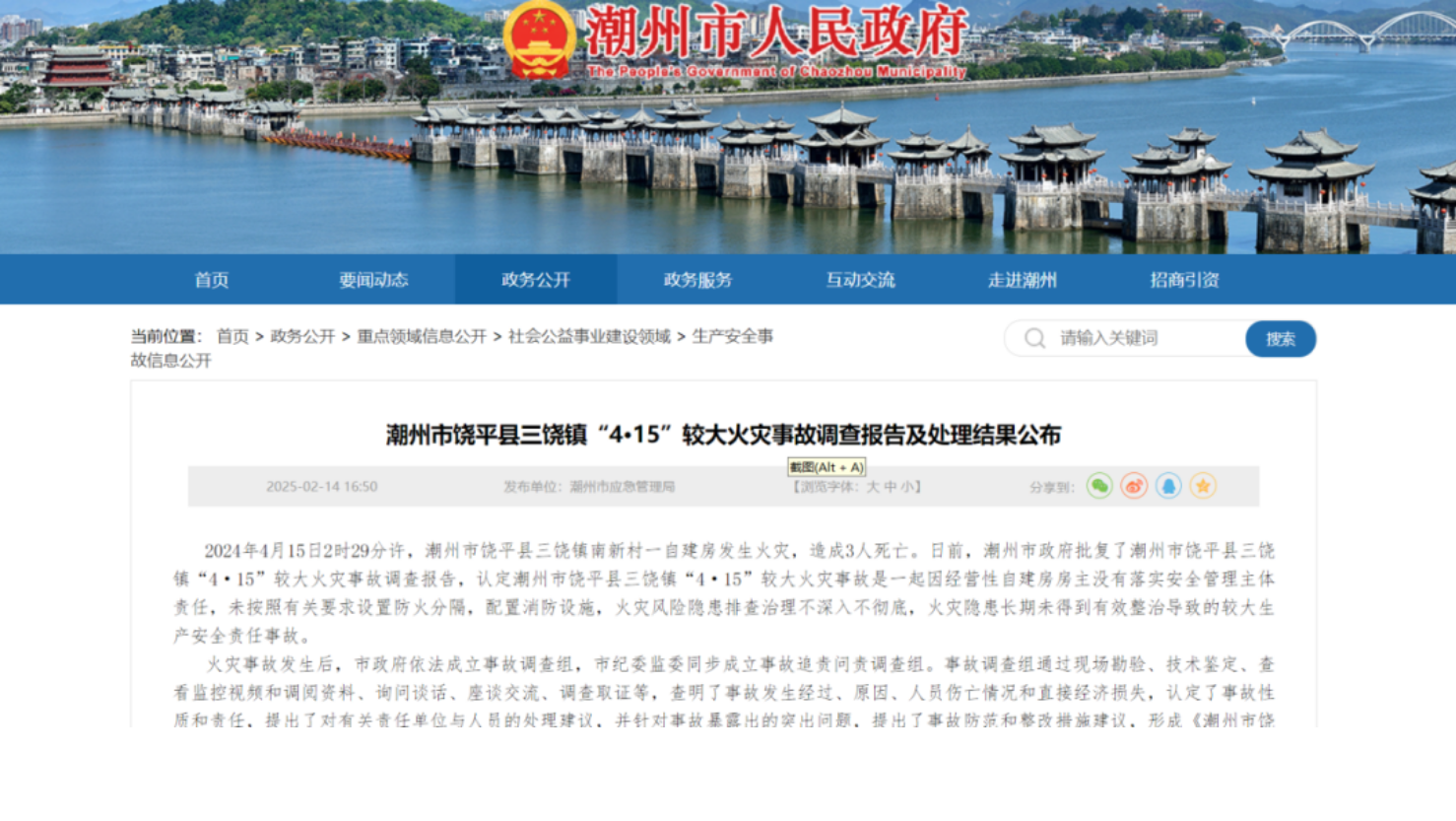 3人遇难!损失190万+!14名党员、公职人员予以问责→中国消防2025年02月19日 06:40北京近日潮州市政府批复了潮州市饶平县三饶镇“4·15”较大火灾事故调查报告事发经过2024年4月15日2时50分许,潮州市消防救援支队指挥中心接到报警:潮州市饶平县三饶镇一自建房起火。2时58分首战力量三饶镇专职消防队到达现场立...重大变化!6月20日起,消防部门不再承担建设工程消防设计审查、验收